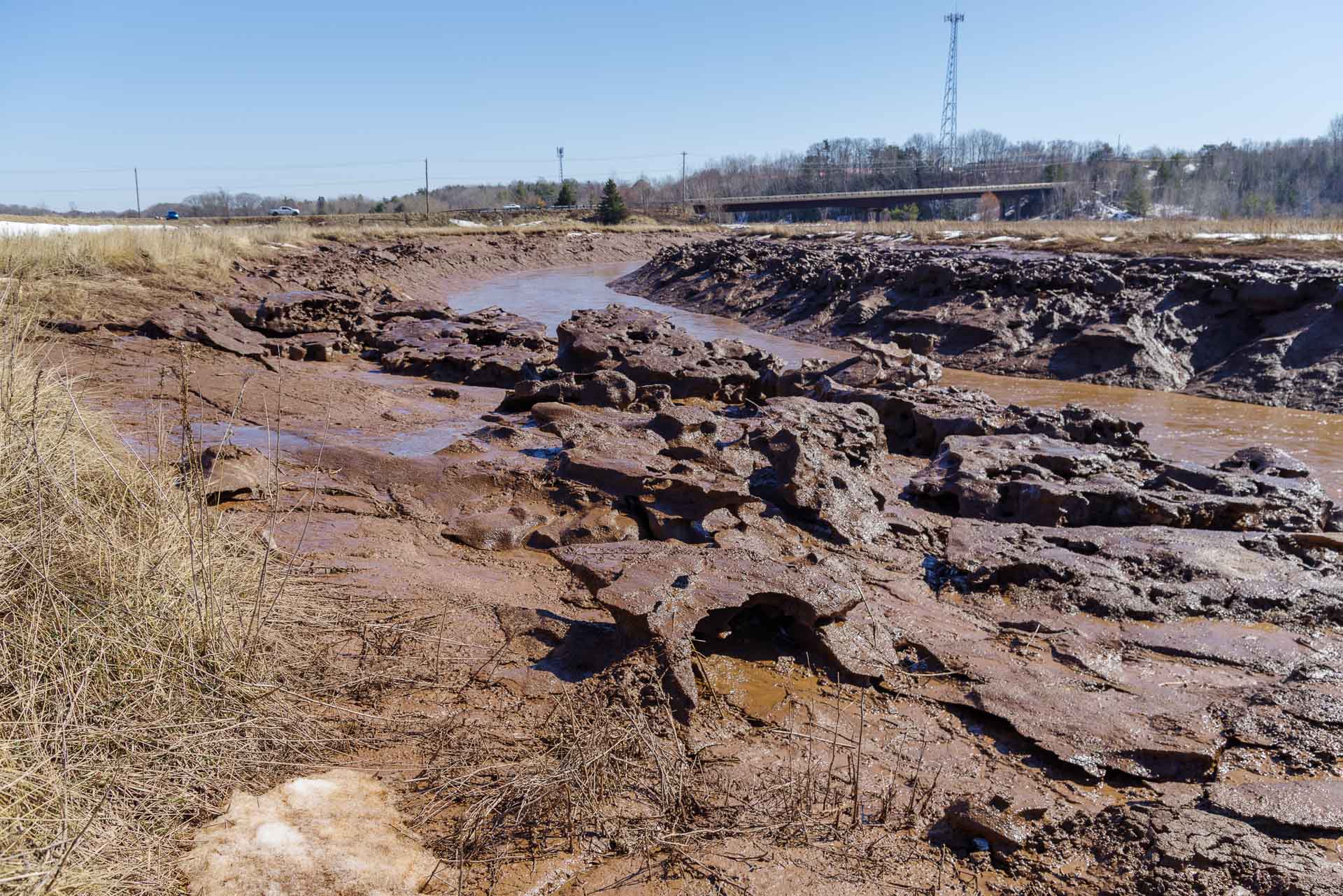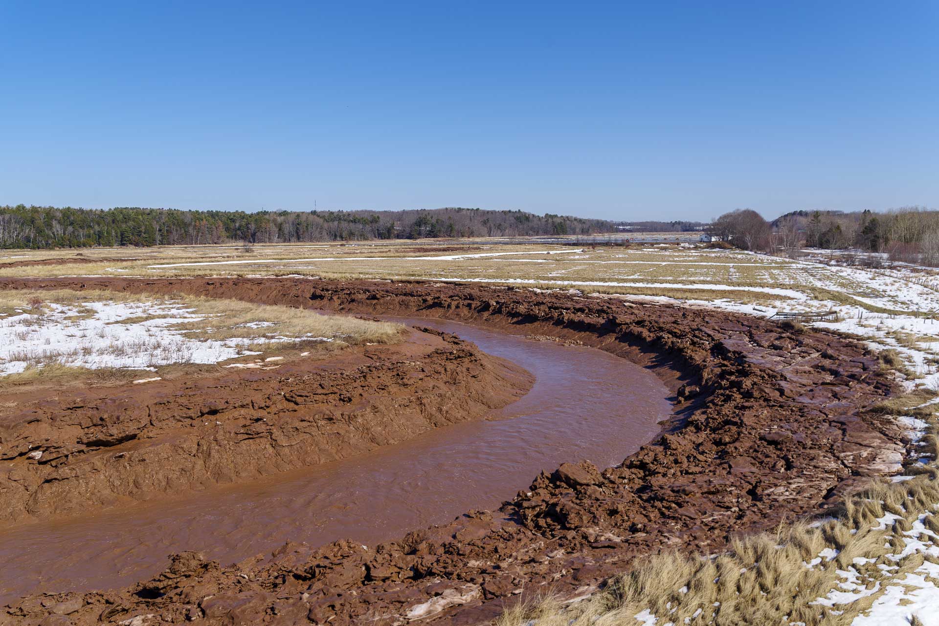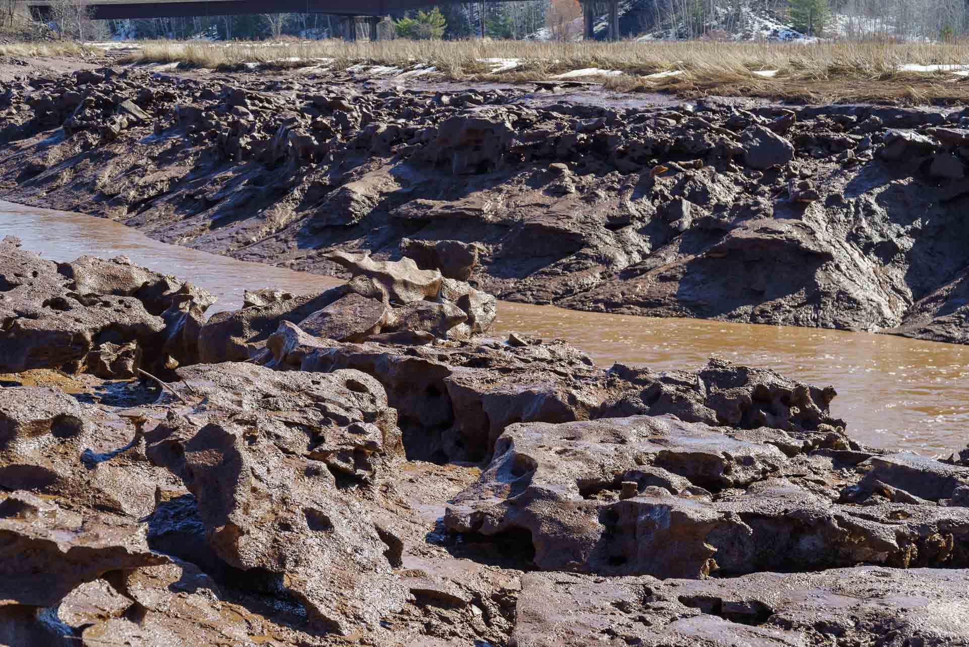 Cornwallis River (Jijuktu’kwejk)The ice flows were pushed up the bank by the rising high tide then left behind by the falling tide. I've become a bit obsessed with these ice flows over the rivers and in the mudflats sometimes caused by the aboiteaus of the Minus Basin.